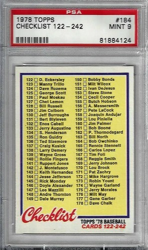 1978 Topps 184 Checklist 122 242 Baseball Cards 122 242 Psa 9 Mint 81884124 Ebay